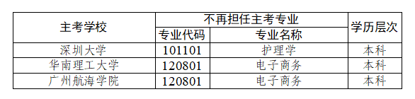 不再擔任廣東省高等教育自學(xué)考試相關(guān)專業(yè)主考學(xué)校匯總表